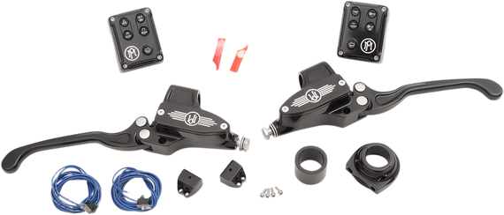 Caracteristicas: CNC machined from billet aluminum Kits include brake master cylinder, brake light switch, starter interrupt switch, left and right side switch housings, dual cable snap in or electronic throttle by wire throttle housing, clutch side spacer and cable clutch perch or hydraulic clutch master cylinder 11/16†clutch master cylinder has hard anodized bore to eliminate wear CAN-bus switch housings utilize stock circuit board for compatibility Mounting hardware included Made in the U.S.A.