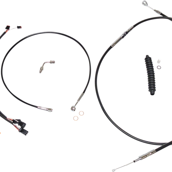 • Kits include throttle and idle cables or throttle-by-wire extensions, clutch cable or XR hydraulic clutch line, XR brake lines, copper crush washers, hardware, turn signal and switch wiring extensions