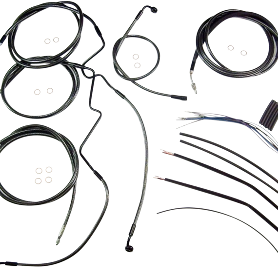 • Kits include throttle and idle cables of throttle-by-wire extensions, clutch cable or hydraulic clutch line, brake lines, copper crush washers, hardware, and any necessary switch wiring of turn signal extension