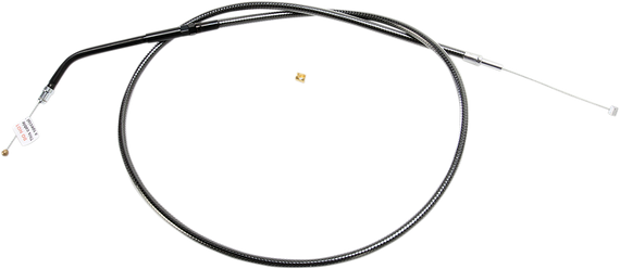 Caracteristicas: Braid color and weave match on all Magnum control cables and brake lines All fittings are polished and plated Crystal clear outer jacket offers exceptional protection against scuffing paint or chrome and will never discolor All cables are made with anti-friction inner liners, nylon adjuster inserts and are factory lubricated for smooth, consistent, long lasting operation Meets or exceeds all OE specifications for fitment, construction and endurance Assembled in the U.S.A. Length given is the length of the outer housing only, excluding the elbow Cables will also fit late style Mikuni carbs