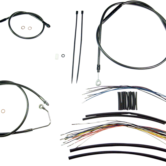 • Kits include throttle and idle cables of throttle-by-wire extensions, clutch cable or hydraulic clutch line, brake lines, copper crush washers, hardware, and any necessary switch wiring of turn signal extension
