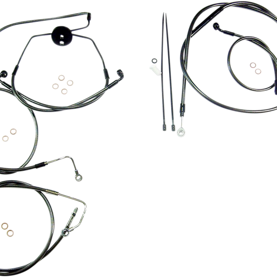 • Kits include throttle and idle cables of throttle-by-wire extensions, clutch cable or hydraulic clutch line, brake lines, copper crush washers, hardware, and any necessary switch wiring of turn signal extension