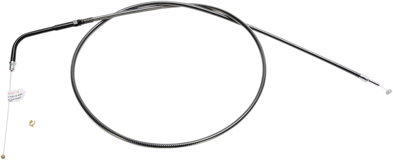 Caracteristicas: Braid color and weave match on all Magnum control cables and brake lines All fittings are polished and plated Crystal clear outer jacket offers exceptional protection against scuffing paint or chrome and will never discolor All cables are made with anti-friction inner liners, nylon adjuster inserts and are factory lubricated for smooth, consistent, long lasting operation Meets or exceeds all OE specifications for fitment, construction and endurance Assembled in the U.S.A. Length given is the length of the outer housing only, excluding the elbow Cables will also fit late style Mikuni carbs