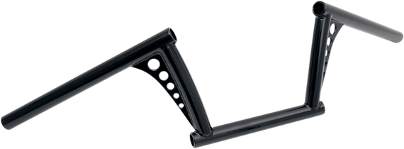 Caracteristicas: Add period-style bobber ape-hanger handlebars to your ride Bars are knurled, slotted and drilled for internal wiring Stylish multi-hole drilled corner gussets offer strength and rigidity Hand TIG welded Feature chrome billet end caps Not for throttle-by-wire applications Made in the U.S.A.