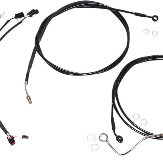 • Kits include throttle and idle cables or throttle-by-wire extensions, clutch cable or XR hydraulic clutch line, XR brake lines, copper crush washers, hardware, turn signal and switch wiring extensions