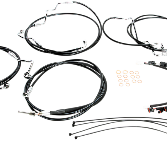 • Kits include throttle and idle cables or throttle-by-wire extensions, clutch cable or XR hydraulic clutch line, XR brake lines, copper crush washers, hardware, turn signal and switch wiring extensions