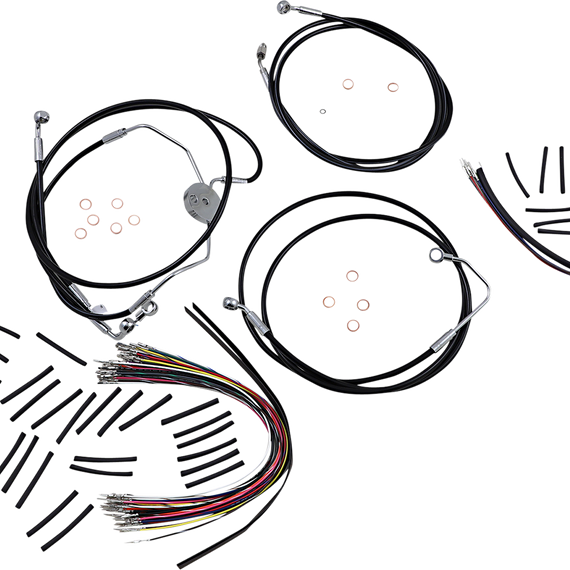 • Kits include throttle and idle cables or throttle-by-wire extensions, clutch cable or XR hydraulic clutch line, XR brake lines, copper crush washers, hardware, turn signal and switch wiring extensions
