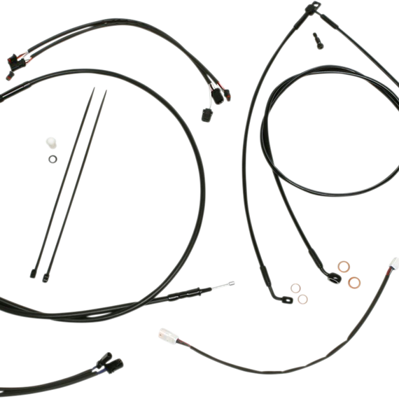 Caracteristicas: Magnum XR Handlebar Installation Kits offer a great fit and excellent quality at an economical price Kit features highly polished, chrome plated fittings All cables are a low effort, high efficiency design that meets or exceeds all OE specifications for fitment, construction, endurance Magnum XR Brake Lines use an enhanced construction of heavy gauge stainless steel embedded in tough abrasion resistant nylon outer jacket for superior durability and extreme braking response for safe riding The coating on cables and brake lines offers exceptional protection for paint or chrome Kits that include manifolds use an all brazed construction to ensure optimal OE fitment and appearance Manifolds use -3 AN connections for an easy installation Kits include throttle and idle cables or throttle-by-wire extensions, clutch cable or XR hydraulic clutch line, XR brake lines, copper crush washers, hardware, turn signal and switch wiring extensions Kits are based on using ape hanger style handlebars and 2" risers.