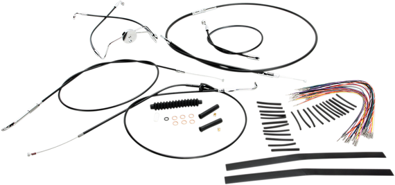 Caracteristicas: Magnum XR Handlebar Installation Kits offer a great fit and excellent quality at an economical price Kit features highly polished, chrome plated fittings All cables are a low effort, high efficiency design that meets or exceeds all OE specifications for fitment, construction, endurance Magnum XR Brake Lines use an enhanced construction of heavy gauge stainless steel embedded in tough abrasion resistant nylon outer jacket for superior durability and extreme braking response for safe riding The coating on cables and brake lines offers exceptional protection for paint or chrome Kits that include manifolds use an all brazed construction to ensure optimal OE fitment and appearance Manifolds use -3 AN connections for an easy installation Kits include throttle and idle cables or throttle-by-wire extensions, clutch cable or XR hydraulic clutch line, XR brake lines, copper crush washers, hardware, turn signal and switch wiring extensions Kits are based on using ape hanger style handlebars and 2" risers.