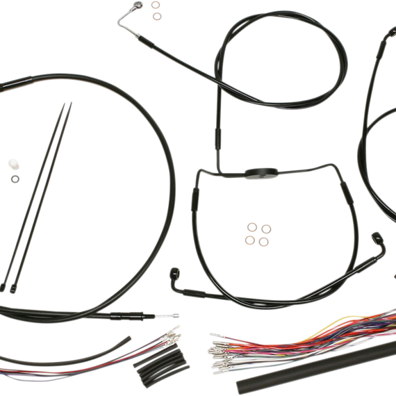 • Kits include throttle and idle cables or throttle-by-wire extensions, clutch cable or XR hydraulic clutch line, XR brake lines, copper crush washers, hardware, turn signal and switch wiring extensions
