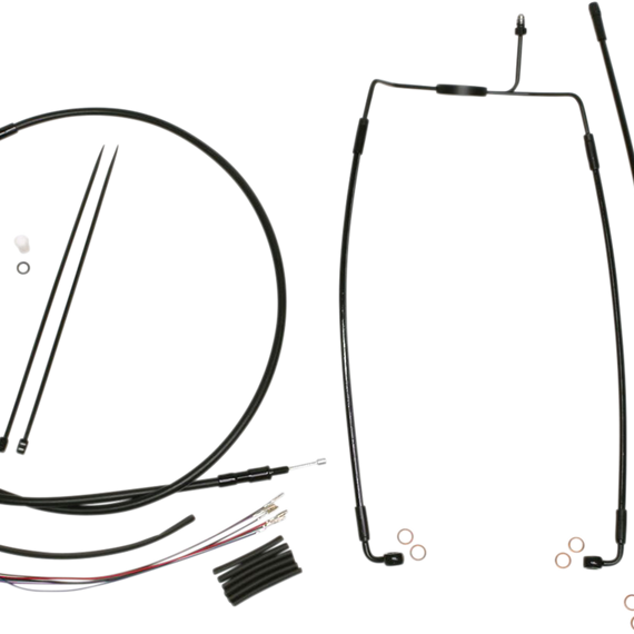 Caracteristicas: Magnum XR Handlebar Installation Kits offer a great fit and excellent quality at an economical price Kit features highly polished, chrome plated fittings All cables are a low effort, high efficiency design that meets or exceeds all OE specifications for fitment, construction, endurance Magnum XR Brake Lines use an enhanced construction of heavy gauge stainless steel embedded in tough abrasion resistant nylon outer jacket for superior durability and extreme braking response for safe riding The coating on cables and brake lines offers exceptional protection for paint or chrome Kits that include manifolds use an all brazed construction to ensure optimal OE fitment and appearance Manifolds use -3 AN connections for an easy installation Kits include throttle and idle cables or throttle-by-wire extensions, clutch cable or XR hydraulic clutch line, XR brake lines, copper crush washers, hardware, turn signal and switch wiring extensions Kits are based on using ape hanger style handlebars and 2" risers.