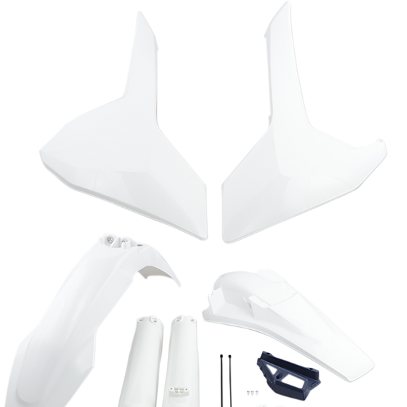 Caracteristicas: Include Performance front fender, Stadium front number plate, Powerflow radiator shrouds, side panels, Powerflow rear fender and fork guards Injection-molded for precise fit and finish Made in the U.S.A.