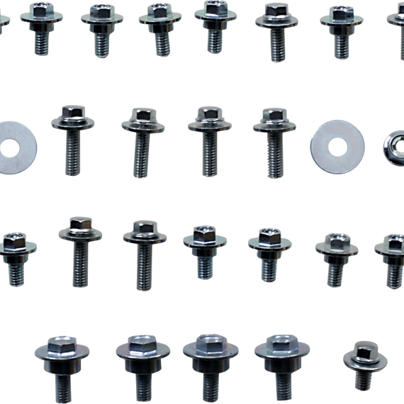 • Include bolts for front and rear fenders, fork guards, front number plates, seats, side panels and radiator shrouds