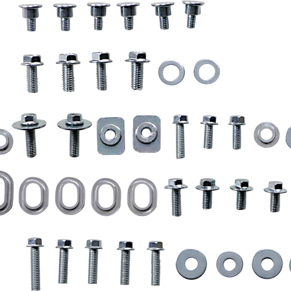 • Include bolts for front and rear fenders, fork guards, front number plates, seats, side panels and radiator shrouds