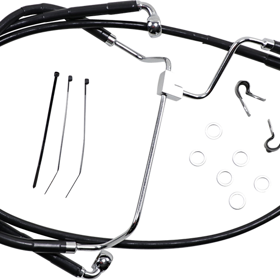 Caracteristicas: Features black vinyl-coated braided extended lines with chrome steel fittings Made in the U.S.A. All measurements are approximate