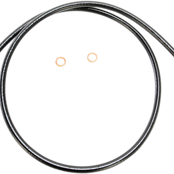 Caracteristicas: Manufactured with an enhanced construction designed to be compatible with Harley-Davidson ABS requirements for stock and alternate length brake lines - designed to follow the same routing path as OEM lines Brake kits consist of a direct fit lower assembly used in conjunction with alternative length upper lines Braid color and weave match all MAGNUM control cables and brake lines - Crystal clear outer jacket offers exceptional protection against scuffing paint or chrome and will never discolor Brake lines are constructed with PTFE inner tubing, DuPont™ Kevlar® aramid fiber, premium Signature Magnum braids and an outer PVC jacket to greatly reduce line expansion Upper, lower, mid brake line and adapter kits are sold separately to for a perfect fit. Compliant with all DOT FMVSS-106 requirements Assembled in the U.S.A. DuPont™ and Kevlar® are trademarks or registered trademarks of E.I. du Pont de Nemours and Company. Single disc Dyna and Sportster models use two kits – one upper and one lower. Softail models utilize 3 kits (except '18+ dual disc), with the lower being optional on all. Upper kits are required for handlebar changes; by using either an upper brake line adapter or for '11 - '17 Softail models, the optional ABS Lower Brake Line Kit which includes the adapter. Adapter for Softail models allows the upper brake line to complete the connection from the ABS controller ('11 - '17) or lower brake line ('18+) to the master cylinder If replacing the stock lower brake line assembly on '18+ dual disc Softails, an adapter is NOT needed. Using AN-3 fittings, the upper line connects directly to the Magnum lower assembly Dual disc Touring models use three kits - one upper, one lower and one mid-line. Trike models use two kits - one upper and one mid-line. No lower is available. A Designer mid-line and upper line is required for all Touring and Trike models with ABS. The mid-line connects to the upper brake line in the fairing or nacelle and completes the routing from the master cylinder to the ABS controller. A lower kit is optional. Non-stock applications require taking a measurement for upper brake line length and banjo angle to ensure correct fitment (see How to Order) Harley-Davidson motorcycles equipped with ABS (anti-lock brake system) require ABS specific upper and lower brake line kits.  Failure to do so may result in compromised anti-lock braking ability.  Magnum Shielding upper brake line kits manufactured specifically for these applications are identified with the letters “ABS” printed directly on the brake hose. Upper line length for Softail, Dyna, and '14+ Sportster models is determined by using your stock OE master cylinder brake line as a guide. Pull the rubber boot back and measure from the point at which the soft, flexible line enters the crimp collar on the lower portion. Follow the brake line routing up to your master cylinder. (see diagrams below) '18+ Softail – Upper line replacement when reusing the stock lower brake line. (adapter required) Lengths are determined by using the stock master cylinder line for a guide. Measure from the lower brake line manifold where the upper line attaches, up to the master cylinder.  From that measurement subtract 1.5” for the adapter and round up to the next number to determine upper line length. (see diagram below) '18+ Softail Single Disc Upper and Lower line replacement requires an adapter. (3 kits) Adapter is NOT needed when replacing both the Upper and Lower '18+ Softail Dual Disc brake lines. (2 Kits) The upper line connects directly to the Magnum Designer dual disc lower brake line. Follow the above instruction without subtracting 1.5” for the adapter. Rounded up, the length measured will be correct. Upper line length for Touring and Trike models is measured using the 49" mid-line as a reference to determine additional line length needed to complete the routing from the ABS controller to the master cylinder. That measurement will be your upper line length.
