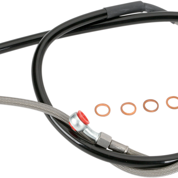 Caracteristicas: Swivel union ends are the secret to easier fitting, and ensure a kink- and stress-free installation Venhill Engineering in the UK makes Moose Racing Stainless Steel Brake and Clutch lines to the highest specifications Each line is made from top quality DuPont Teflon®-coated hose, wrapped with British-made stainless steel, and PVC-coated for protection and great looks Rubber protection boots and extra-rigid tubing are used to protect vulnerable areas from heat and impact and to prevent hose flex under compression Each line is designed to withstand a minimum of 14,000 psi Installing Moose Racing stainless lines gives a large performance increase by significantly reducing expansion under pressure and absorption of water when compared to stock rubber hoses