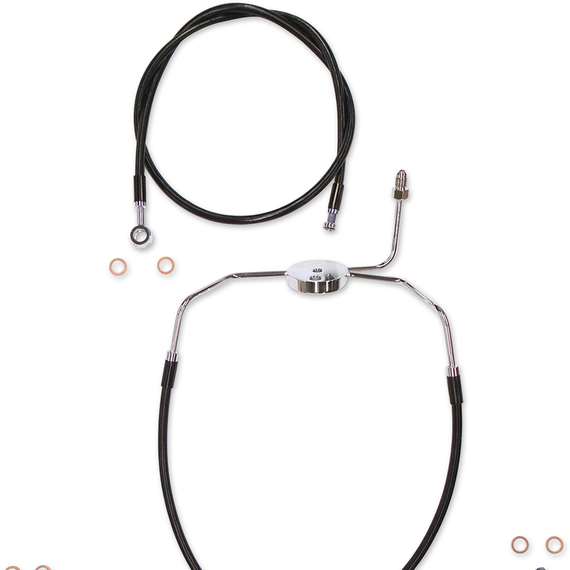 Caracteristicas: Manufactured with an enhanced construction for extreme braking response and durability Designed to be compatible with Harley-Davidson® ABS requirements for stock and alternate length brake lines Inner PTFE tubing braided with XR Stainless Steel reinforcement embedded in a tough Nylon outer jacket offers exceptional protection for paint or chrome All fittings are highly polished and chrome plated All brazed manifold construction eliminates leaks, alignment problems, and unattractive threaded connections for a sleek appearance AN-3 connections for easy installations Assembled in the U.S.A. Complete kits contain brake line assemblies to connect the caliper(s) to the master cylinder All non-ABS kits are complete kits Dyna and Sportster ABS kits are complete and include an upper and lower brake line Touring, Trike and Softail ABS brake line kits are available separately as upper and lower kits (except '18+ Softail FXFB, which is a complete kit) ABS lower kits are optional and do not require an upper line for installation ABS upper kits contain a brake line assembly with any needed adapters to connect the ABS controller or lower brake line assembly to the master cylinder. A lower brake line assembly is not required