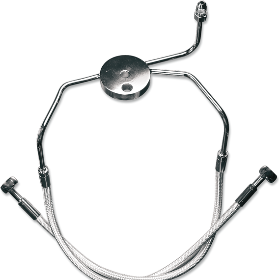 Caracteristicas: If replacing the stock lower brake line assembly on 2018+ dual disc Softails, an adapter is NOT needed. Using -3AN fittings, the upper line connects directly to the Magnum lower assembly Brake lines are constructed with PTFE inner tubing, DuPont™ Kevlar® aramid fiber, premium Signature Magnum braids and an outer PVC jacket to greatly reduce line expansion Manufactured with an enhanced construction designed to be compatible with Harley-Davidson ABS requirements for stock and alternate length brake lines Brake kits consist of a direct fit lower assembly used in conjunction with alternative length upper lines 3AN connections make for easy installations Assembled in the U.S.A.