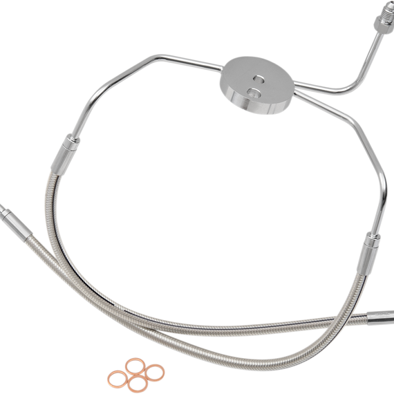 Caracteristicas: If replacing the stock lower brake line assembly on '18+ dual disc Softails, an adapter is NOT needed. Using AN-3 fittings, the upper line connects directly to the Magnum lower assembly Brake lines are constructed with PTFE inner tubing, DuPont™ Kevlar® aramid fiber, premium Signature Magnum braids and an outer PVC jacket to greatly reduce line expansion Manufactured with an enhanced construction designed to be compatible with Harley-Davidson ABS requirements for stock and alternate length brake lines Brake kits consist of a direct fit lower assembly used in conjunction with alternative length upper lines AN-3 connections make for easy installations Assembled in the U.S.A.