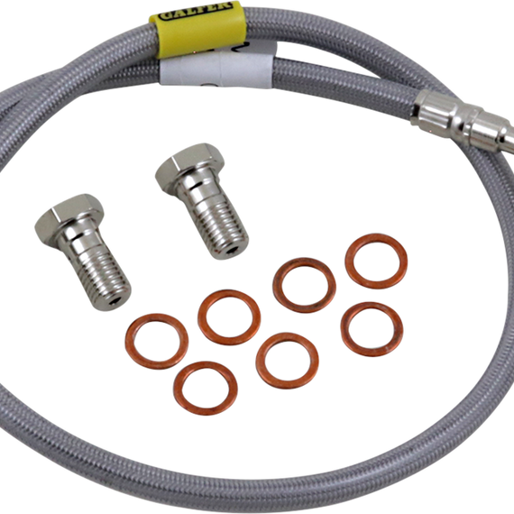 Caracteristicas: 64 braided strands of steel around the line, making the line have zero expansion at any time - better than any other braided line Requires less pressure at the lever, allowing the rider to use less force while stopping the bike faster and with better feel Fittings come from the factory pre-positioned but can swivel 180° if necessary to make the installation process easier Include a clear outer coating which protects the bike from scratches and the lines from humidity Complete with all necessary banjo bolts and washers Ready to install