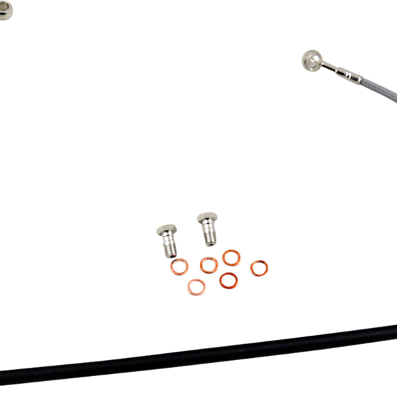 Caracteristicas: 64 braided strands of steel around the line, making the line have zero expansion at any time - better than any other braided line Requires less pressure at the lever, allowing the rider to use less force while stopping the bike faster and with better feel Fittings come from the factory pre-positioned but can swivel 180° if necessary to make the installation process easier Include a clear outer coating which protects the bike from scratches and the lines from humidity Complete with all necessary banjo bolts and washers Ready to install