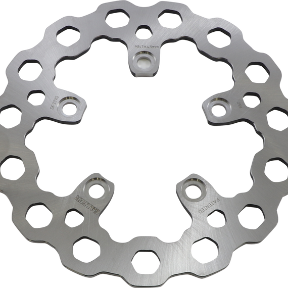 • Less unsprung weight (up to 40% lighter than standard round rotors) reduces gyroscopic effect and improves the manueverability of the motorcycle