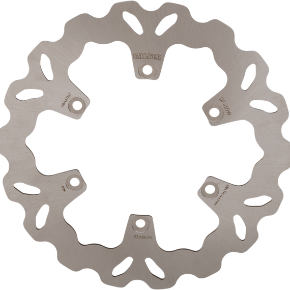 Caracteristicas: Laser-cut double disc ground 420 high carbon stainless steel Direct-replacement brake rotors; do not require any extra parts, bolt on just like a stock brake disc Full-floating design rotors have an aluminum center carrier Improves brake lever feel and modulation Rotors cool as they rotate to lower brake operating temperatures Design is self-cleaning, removes water as it rotates Less tendency to warp Manufactured in Spain For maximum braking performance and rotor longevity, Galfer recommends using Galfer brake pads with Galfer rotors.