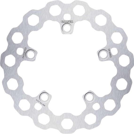 Caracteristicas: Named after the crystal steel molecules, the Cubiq brake rotor combines state-of-the-art technology with modern design Rotor shape promotes uniform brake pad wear the contact surface between the pad and disc every revolution generates regular wear Less unsprung weight (up to 40% lighter than standard round rotors) reduces gyroscopic effect and improves the manueverability of the motorcycle Increased perimeter surface design generates more cooling surface around the rotor for better temperature dissipation