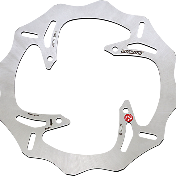 Caracteristicas: Efficient design utilizes all the brake pad's surface evenly and eliminates lightening holes, which adds strength Better heat dissipation Self-cleaning Provide maximum stopping power while remaining perfectly flat Design is covered by an international license Unlike cheaply designed, stamped stock rotors, Braking U.S.A. rotors are made from a super-tough, high-carbon-content stainless steel and laser-cut with a CAD-CAM machine Used by top competitors