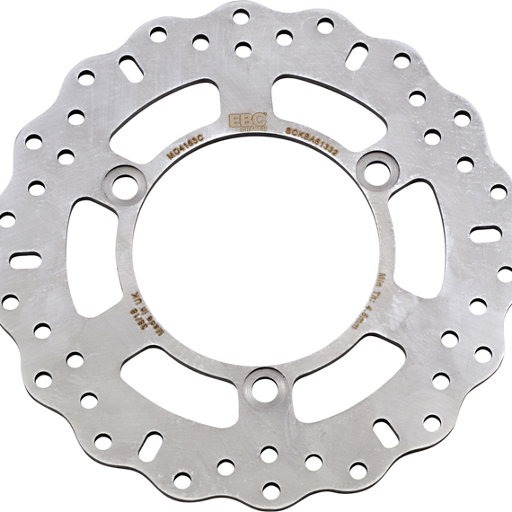 Caracteristicas: Floating brake disc with a radical, profiled contour brake rotor ring Brake disc design reduces weight and increases brake effect Brake disc center hubs are forged aluminum Rotor construction uses high-friction billet steel Universal left-side or right-side application Select front rotors available with SD-System™ of square-sided buttons that allow the rotor to expand inwards and outwards unrestrained for perfect rotor functionality at any speed or load and increased durability