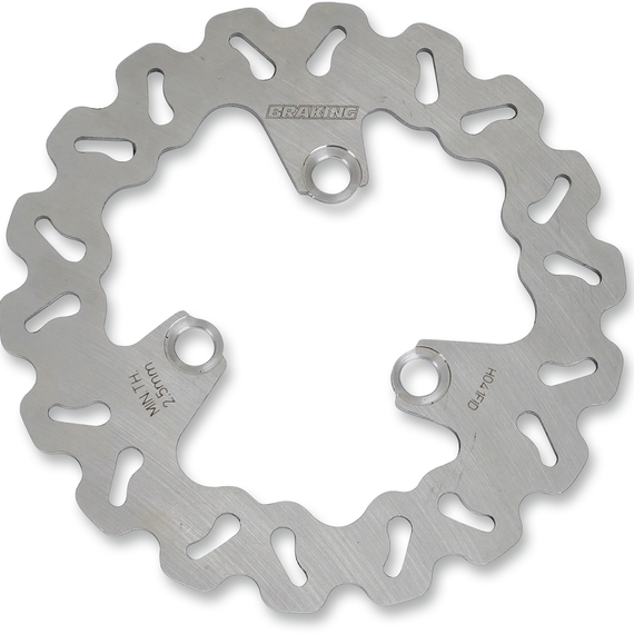Caracteristicas: Efficient design utilizes all the brake pad's surface evenly and eliminates lightening holes, which adds strength Better heat dissipation Self-cleaning Provides maximum stopping power while remaining perfectly flat Design is covered by an international license Unlike cheaply designed, stamped stock rotors, Braking U.S.A. rotors are made from a super-touch, high-carbon-content stainless steel and laser-cut with a CAD-CAM machine Used by top competitors