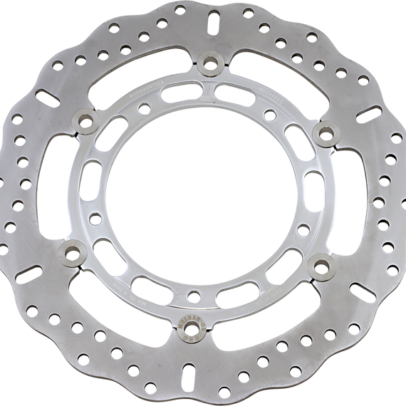 Caracteristicas: Floating brake disc with a radical, profiled contour brake rotor ring Brake disc design reduces weight and increases brake effect Brake disc center hubs are forged aluminum Rotor construction uses high-friction billet steel Universal left-side or right-side application Select front rotors available with SD-System™ of square-sided buttons that allow the rotor to expand inwards and outwards unrestrained for perfect rotor functionality at any speed or load and increased durability