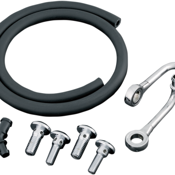 Caracteristicas: Kits route the vented gases upward so gravity can keep any expelled oil droplets back into the engine instead of down the sides of the bike Vent line can be run up or out, into an optional catch tank Include vent hose and fittings