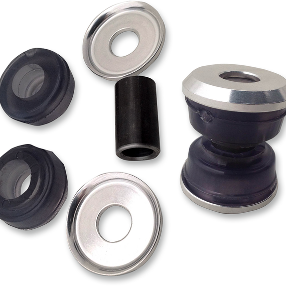 • Injection-molded polyurethane bushing, with aluminum cups and steel tubes