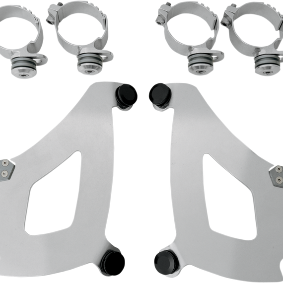 Caracteristicas: Model specific no-hassle installation, then on-off without tools. A pair of glass-filled nylon latches lock it down until the spring loaded "Trigger-Locks" are intentionally disengaged. Made exclusively of electrocoated aluminum and stainless steel, with stainless steel fasteners. Anchoring hardware is the same for all windshields and fairings for each bike. Made in the U.S.A.