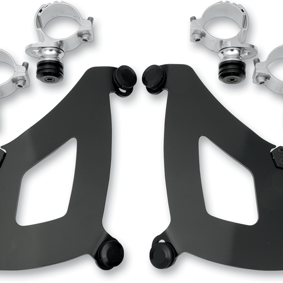Caracteristicas: Model specific no-hassle installation, then on-off without tools. A pair of glass-filled nylon latches lock it down until the spring loaded "Trigger-Locks" are intentionally disengaged. Made exclusively of electrocoated aluminum and stainless steel, with stainless steel fasteners. Anchoring hardware is the same for all windshields and fairings for each bike. Made in the U.S.A.