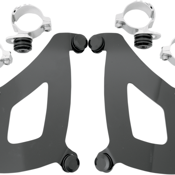 Caracteristicas: Model specific no-hassle installation, then on-off without tools. A pair of glass-filled nylon latches lock it down until the spring loaded "Trigger-Locks" are intentionally disengaged. Made exclusively of electrocoated aluminum and stainless steel, with stainless steel fasteners. Anchoring hardware is the same for all windshields and fairings for each bike. Made in the U.S.A.