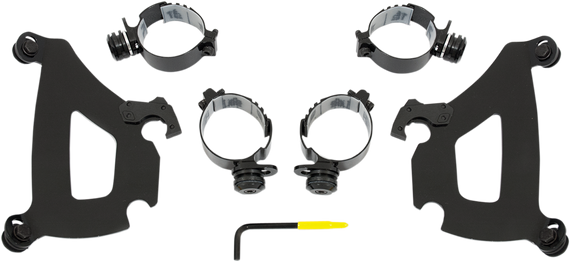 Caracteristicas: Model specific no-hassle installation, then on-off without tools. A pair of glass-filled nylon latches lock it down until the spring loaded "Trigger-Locks" are intentionally disengaged. Made exclusively of electrocoated aluminum and stainless steel, with stainless steel fasteners. Anchoring hardware is the same for all windshields and fairings for each bike. Made in the U.S.A.