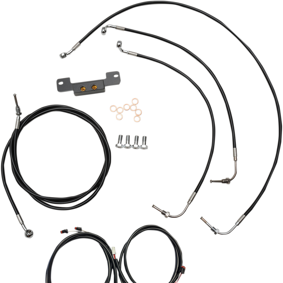 Caracteristicas: Take "cable calculation" headaches out of swapping handlebars Kit includes correct length braided cables, brake/clutch lines and wire extensions to complete a handlebar swap Wire extensions plug directly into OEM plugs, no need to cut or solder any wires All cables and lines are stainless steel, no matter the finish Compliant with all DOT FMVSS-106 requirements Made in the U.S.A.