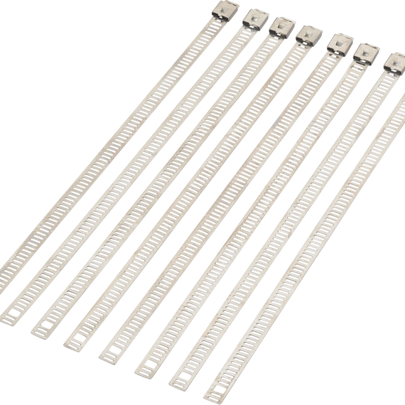 Caracteristicas: Self-locking design for fast and secure installation Made from 316 stainless steel and ideal for applications that involve corrosion, vibration and high temperatures Compatible and look great when used to install exhaust and header wraps