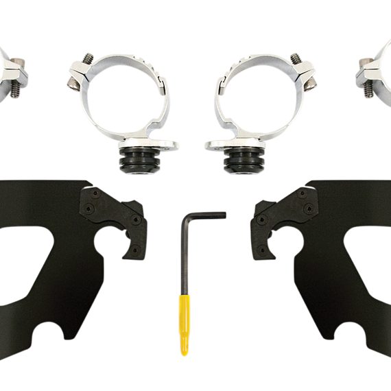 Caracteristicas: Angle Adjustable Model specific no-hassle installation, then on-off without tools. A pair of glass-filled nylon latches lock it down until the spring loaded "Trigger-Locks" are intentionally disengaged. Made exclusively of electrocoated aluminum and stainless steel, with stainless steel fasteners. Anchoring hardware is the same for all windshields and fairings for each bike. Made in the U.S.A. - Made in Memphis!