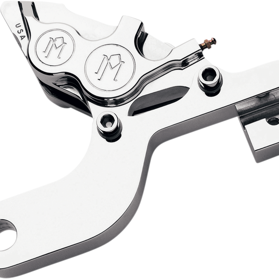 Caracteristicas: Precision machined from billet aluminum Four-piston dual-action design for positive stopping power Include mounting bracket, brake pads, bleeder screw and 3/8"-24 banjo bolt Made in the U.S.A.
