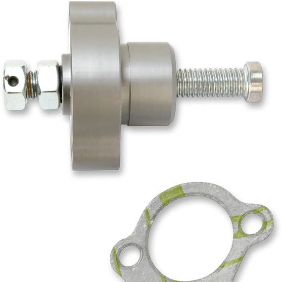 Caracteristicas: CNC-machined from billet aluminum with a gunmetal finish Replaces OEM automatic/hydraulic tensioner Eliminates out-of-timing problems caused by the OEM automatic tensioner Eliminates excess tension/premature engine wear caused by OEM hydraulic tensioner Eliminates cam chain rattling caused by factory tensioner failure