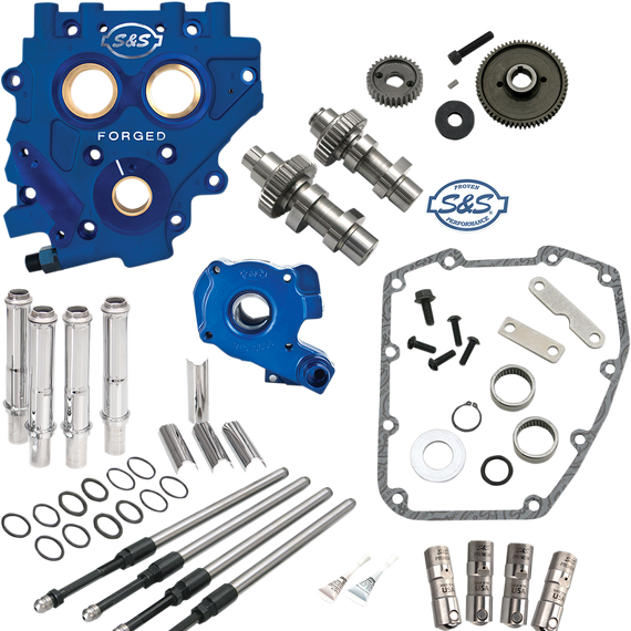 • Replaces stock oil pump, cam support plate, cams, chain tensioners, and tappets with all-new, premium U.S.-made S&S components