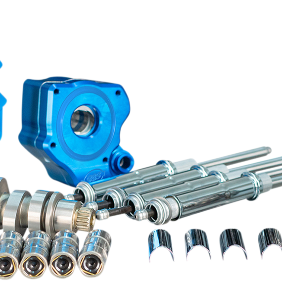 Caracteristicas: Precision Machined from Billet Aluminum Blue Anodized Finish Passage Plugs Removable for servicing Independent Scavenge Sections for Flywheel Cavity and Cam Chest Debris Screens in both scavenge pickups Magnet in Cam Chest to help to stop debris from entering oil pump Increased Flow Capacity on both Feed and Scavenge side Adjustable Pressure Relief Valve is adjustable with unit installed in engine Chrome pushrod tubes Quickee Pushrods S&S Premium Tappets Billet Aluminum Construction Hard Anodized Black Coating Stronger than Stock Material eliminates Distortion Improve tappet stability in high lift and high rpm situations S&S 550 Cam- Designed for Big Bore Applications Chain Drive High Performance Conical Single Wire Spring Includes: Springs, Top Collars, Keepers, Valve Seal/Bottom Collar Works with cams up to .605 lift Includes all gaskets, bearings, and hardware required for installation Made in U.S.A.