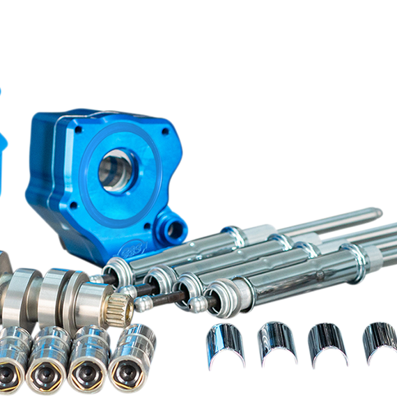 Caracteristicas: Precision Machined from Billet Aluminum Blue Anodized Finish Passage Plugs Removable for servicing Independent Scavenge Sections for Flywheel Cavity and Cam Chest Debris Screens in both scavenge pickups Magnet in Cam Chest to help to stop debris from entering oil pump Increased Flow Capacity on both Feed and Scavenge side Adjustable Pressure Relief Valve is adjustable with unit installed in engine Chrome pushrod tubes Quickee Pushrods S&S Premium Tappets Billet Aluminum Construction Hard Anodized Black Coating Stronger than Stock Material eliminates Distortion Improve tappet stability in high lift and high rpm situations S&S 550 Cam- Designed for Big Bore Applications Chain Drive High Performance Conical Single Wire Spring Includes: Springs, Top Collars, Keepers, Valve Seal/Bottom Collar Works with cams up to .605 lift Includes all gaskets, bearings, and hardware required for installation Made in U.S.A.