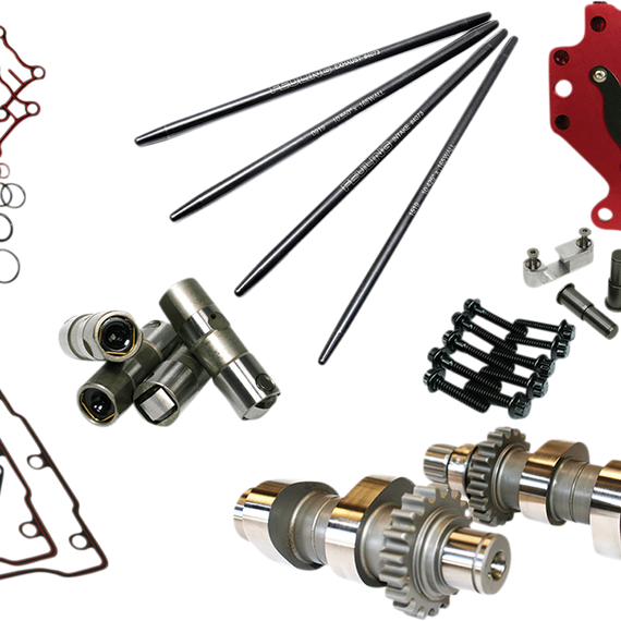 Caracteristicas: All necessary components from top-to-bottom of the camchest Provide maximum reliability, longevity, peak performance, and the coolest engine and oil temperatures obtainable Quieter and smoother engine operation Increase oil pressure, scavenge volume and engine oil flow 25-35 degree cooler engine temperatures 15-30 degree cooler oil temperatures 15-30 more PSI of oil pressure Eliminate wet sumping, blow by and oily air cleaners Heavy-duty Fast Install adjustable pushrods can be installed without removing top rocker covers Includes Feuling® HP+® high-volume oil pump, high-flow billet cam plate, REAPER® Series camshafts, HP+® hydraulic roller lifters, Fast Install® adjustable pushrods, Timken®/Koyo® bearings, gaskets, O-rings, hardware, ARP® fasteners, washers, moly lube and Loctite® Conversion chain drive kits update early mechanical-style tensioner systems to the new late-style hydraulic tensioner chain drive system; these kits utilize conversion Reaper® camshafts which have '99-'06 inner-cam journals matched with '07-'17 outer-cam journals, allowing the use of the '07-'17 cam plate and hydraulic chain drive tensioner system; hydraulic chain drive components purchased separately Installation of gear drive cams will require separate purchase of S&S or Andrews 4-gear drive kit