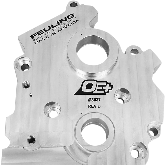 Caracteristicas: FEULING® OE+ stock replacement billet cam plates are manufactured from 6061 aluminum, providing increased rigidity and machined to FEULING's high tolerance standards Direct bolt-in replacement and accept the factory or Feuling OE+ oil pumps Blue printed and matched oil passages to the engine case passages, kidney shapes are designed to maximize flow Optimizes oil flow to and from the oil pump and in and out of the engine, aiding in reducing oil and engine temps Tighter cam journal bore tolerance for improved cam fitment Added Cam journal oil groove for cold start up protection and increased cam journal lubrication Added oil pressure feed holes to front and back of cam journal to prevent excessive thrusting wear For use with the factory or Feuling® OE+ oil pump Made in the U.S.A.
