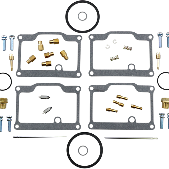 • Kit includes all necessary O-rings, gaskets, jets, needle, mixture screw, float bowl screws, float valve needle and seat (needle jet and other pressed-in jets are not included in kit)